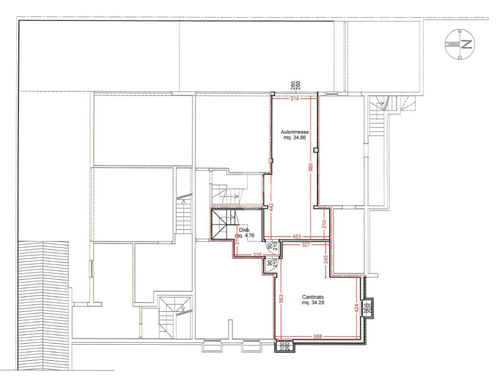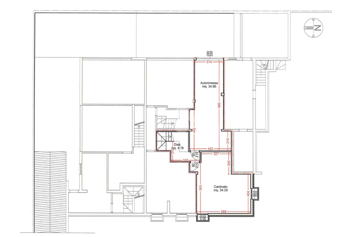Una scala interna conduce al piano interrato, dove sono presenti una spaziosa cantina e un box auto doppio in lunghezza.